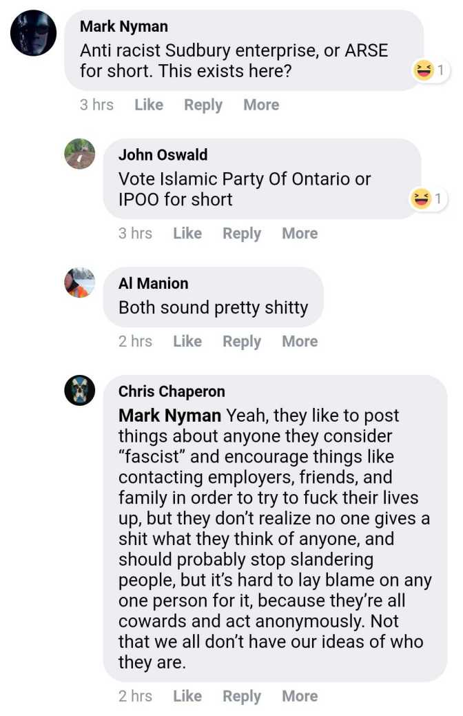 The first is a sign that former Sudbury chapter president David MacKinnon may still have a hand in the group. Standing on the left is a current Soldiers of Odin member that we unfortunately only know as “Poppa Bear”. Of course, if you happen to know Poppa Bear’s name, you could always use our contact page to tell us. (UPDATE: Actually, nevermind that. It looks like this is him: https://facebook.com/profile.php?id=100014092631373)