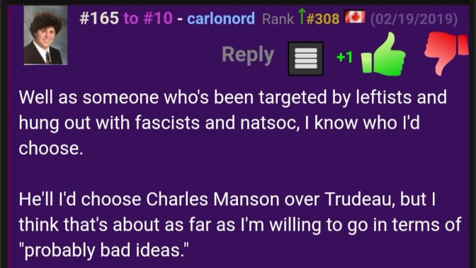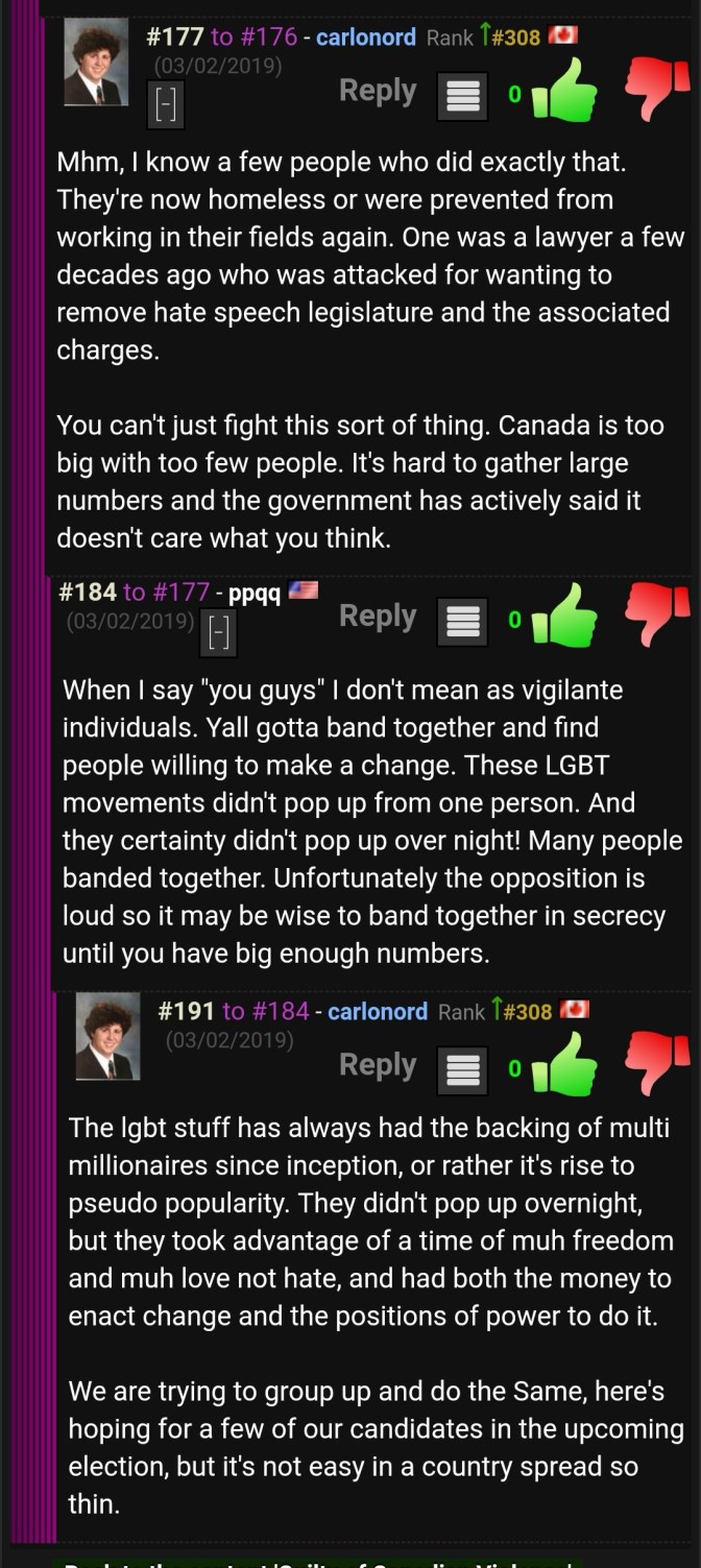 While we haven’t seen any further posters from ID Canada or Nordfront around town since he was outed for putting them up; Liam is still very active online and is still very much a Nazi. He says he doesn’t care about people knowing his first name and what he looks like, but that doesn’t stop him from complaining regularly about being targeted by the left, so we’re not sure which one it really is.
