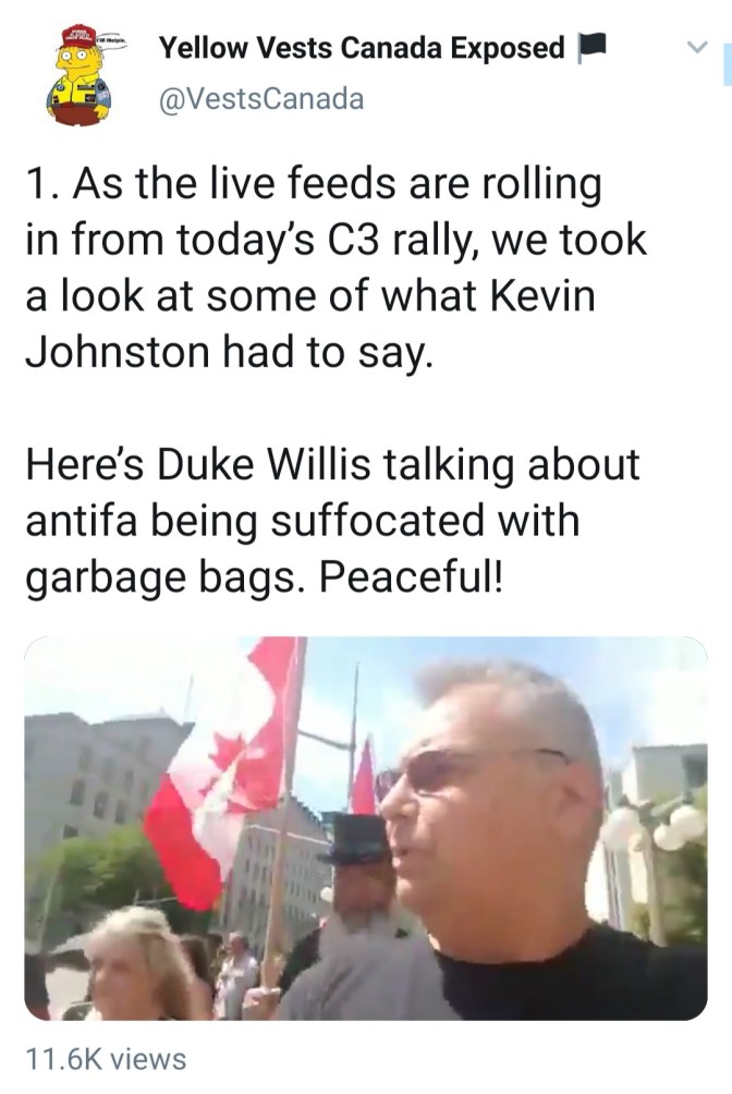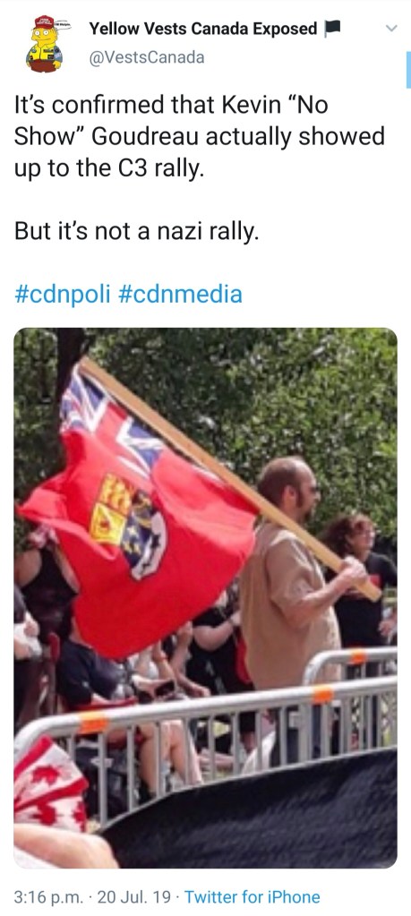 While C3 have been very quiet locally since the winter; both their National President Dan Dubois and Ontario President Dan Unrau still live here, as well as a handful of other members. They continue to travel to other cities and attend far-right demonstrations, most recently the sparsely attended Canadians For Canada 2 rally in Ottawa that Dan Dubois himself put on.