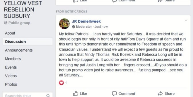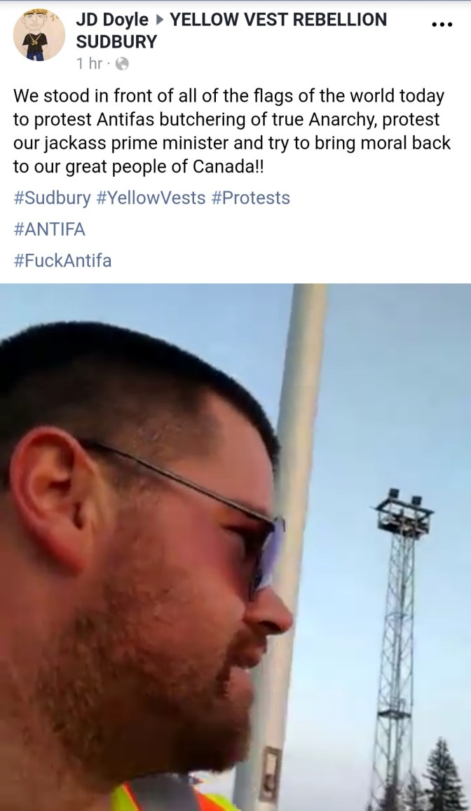 There were four people there, but one is a minor and we are not going to show them. The other three individuals were: Jeff Doyle, John Robert Demellweek and Chris Demkiw. None of the out-of-town Yellow Vests were there.
