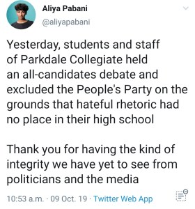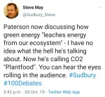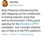 So that’s five times that Sean Paterson and the PPC were given a platform at debates here in Sudbury. As a matter of fact, we do not know of any place where he was denied a platform.