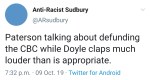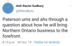 The next day, Paterson was given a platform again by the Laurentian University Political Science Association. He came across again as a bumbling idiot. The comments on Sudbury.com were pretty harsh.