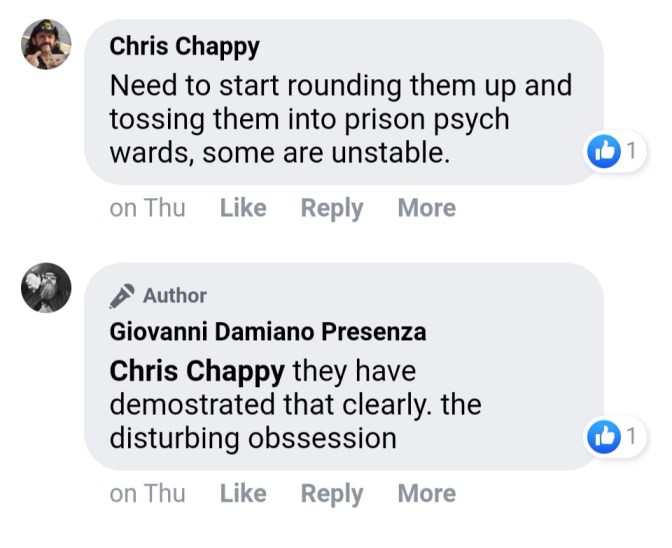 As far as their demands, the main one they’ve made is that we take down our blog, which is not going to happen under any circumstances. A frequent complaint they’ve made is that they have had to explain our posts to their family members and particularly their children, which is something they damn well should have to do.