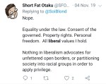 SFO says explicitly that he is a liberal. Who cares. It’s completely possible for him to have centrist or leftist views and still be xenophobic and Islamophobic.