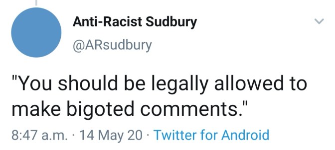 SFO is still banned from Twitter, which means he doesn’t get to argue about communism with people ten years younger than him and refer to them using terms like “bimbo thot”.