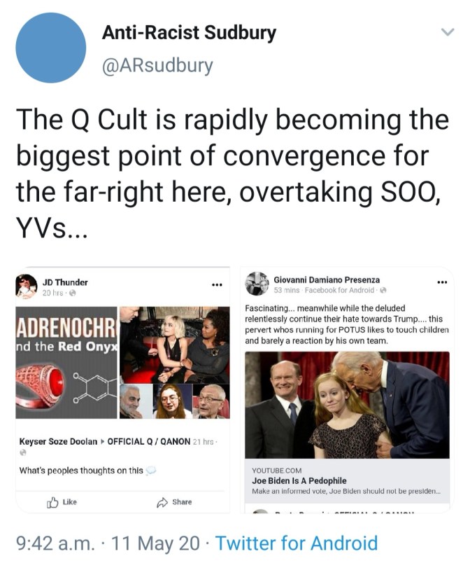 A local man who some of our local readers will no doubt recognize from various online spaces posts in one of the larger Q-Anon groups.
