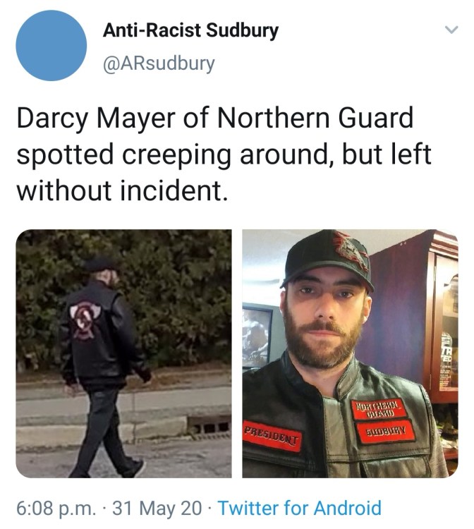 Otherwise, the only other agitators present at both protests were from Greater Sudbury Police Service (GSPS).