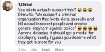 This resulted in some brief hilarity over on Facebook, where some of the cop’s loudest supporters suddenly became their loudest critics.