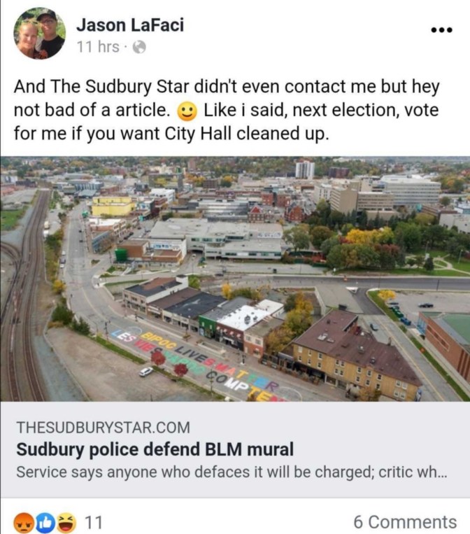 Sudbury Star’s coverage was especially favorable towards GSPS, but also towards SOO VP Jason Lafaci. Again, the SOO are not named. Everybody is a winner here, except for the community, because it’s not like it’s the police and media’s job to report a hate group threatening a hate crime.