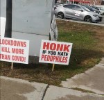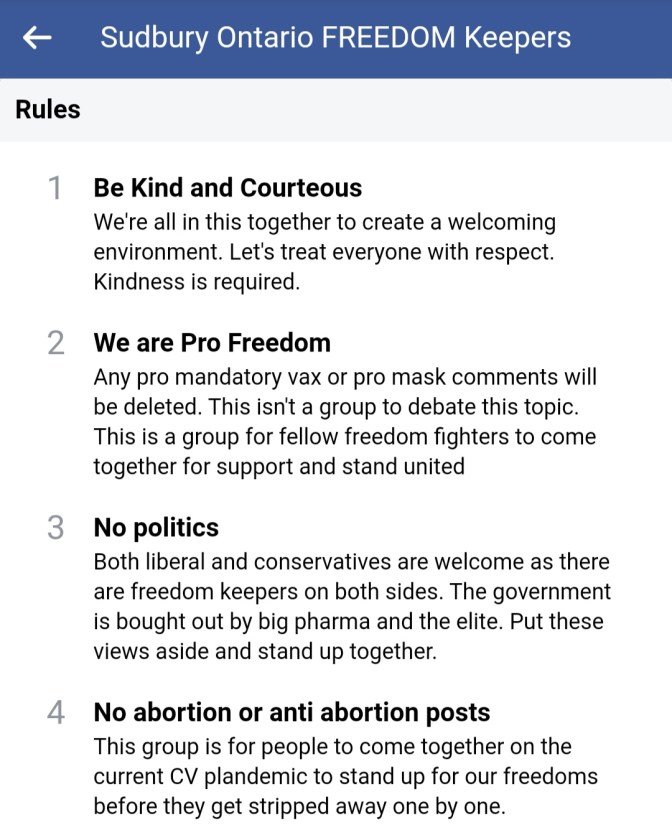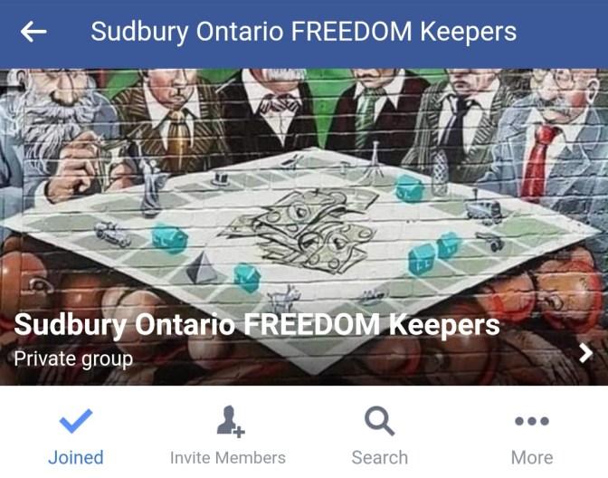 Conspiracy theory and cult Q-Anon has been a major fixture of them since the beginning. Many of the group’s early members were individuals we had already encountered when we were researching Q-Anon spread locally. As we cannot find any real ties to the group of the same name in the United States and there are so many members who are Q-Anon believers; we believe it is also pretty accurate to think of the Sudbury Freedom Keepers as a spinoff of Q-Anon.